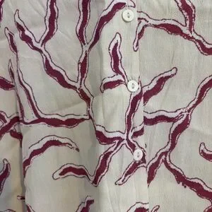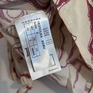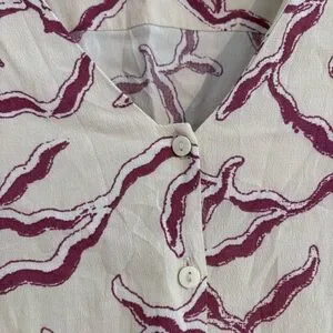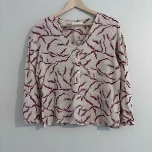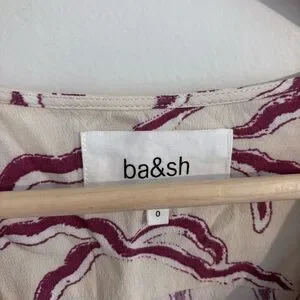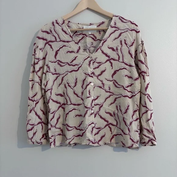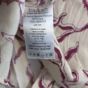 Ba&sh printed crepe blouse. Off white background with pinkish pattern throughout.
