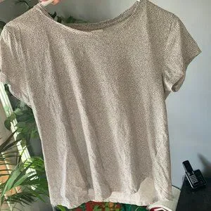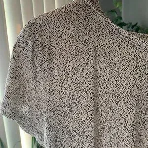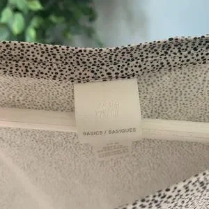 H&M blouse like shirt has that light material and is a very light cream with very light brown coloured brown dots. Relaxed fit.