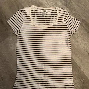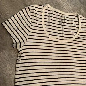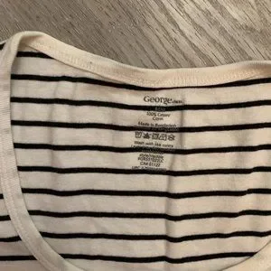 George striped cotton tshirt in a bright white with black stripes and has a tighter fit. Almost want to call it a baby tee.