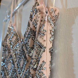 Basix Black Label spaghetti strap beaded Diamond Cocktail Dress - Size 4. Nice light pink & silver, can match a varieties of accessories. Suitable for most parties. Very good condition, a few beads are missing but not noticeable.