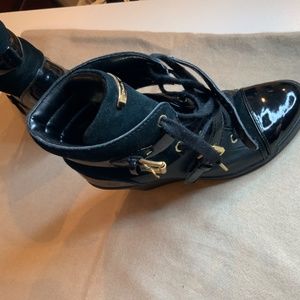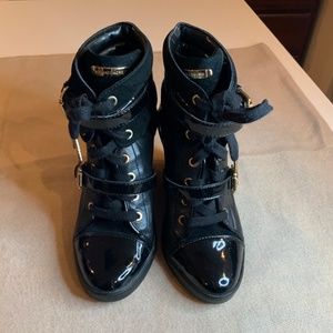 Baskets compensées Michael Kors noires et dorées / bottines à lacets / bottines