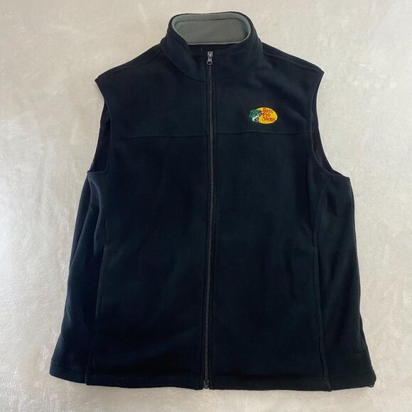 Bass Pro Shops Fleece Vest Mens Large adjustable Full Zip Black Embroider Logo
