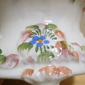 Bassano Italy Ceramic Trinket Vanity Dresser Box Lid Floral Embossed 4.75" Dia.