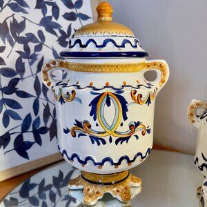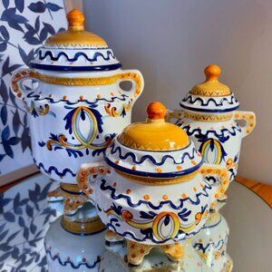 Bassano Ornate Italian Blue and Yellow Ceramic Pottery Set
