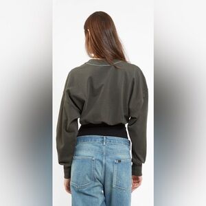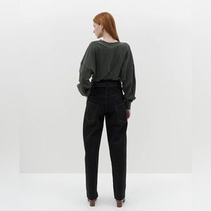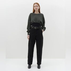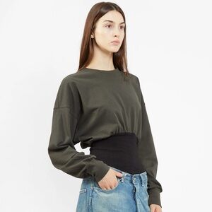 Bassike experiments with proportions to create this grey and black top. Made in Australia from organic cotton jersey, it’s cut to a relaxed silhouette with dropped shoulders and a ribbed hem panel that cinches the waist. Excellent condition. Regular $280 usd. Sold out. Size 1 is US size small.