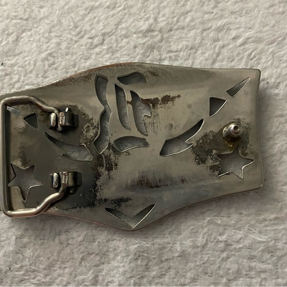 Batch Of Three Vintage Belt Buckles Including Brass Harley Davidson