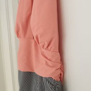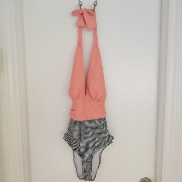 Cupshe one piece bathing suit in a lovely shade of peach. Gathers help to hide belly fat.