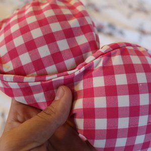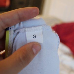 All small or medium. All $5.00 each except for the padded gingham one, which is $10 (Abercrombie & Fitch).