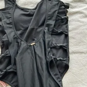 One piece bathing suits. The black one is from Hollister in a size small and the pink one is from SHEIN in a size small