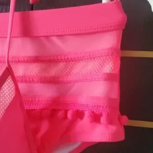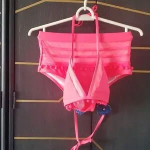 Super cute pink 2 piece high waisted with pom pom detail...never warn