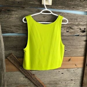 Sleeveless cropped tank top. Reversible neon/black with graphic print Batman logo