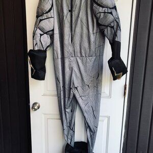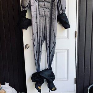 Includes: Padded jumpsuit with boot covers & gauntlets, replacement Batman mask