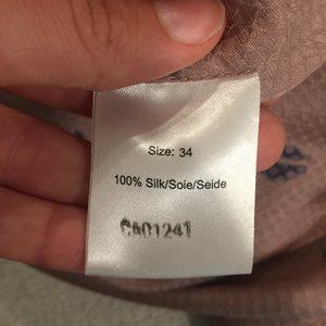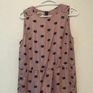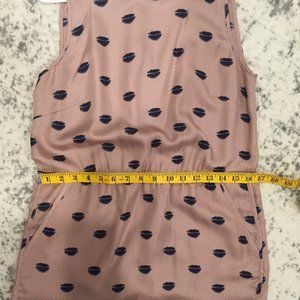 100% Silk Shift dress in a soft mauve color with navy blue kiss print.