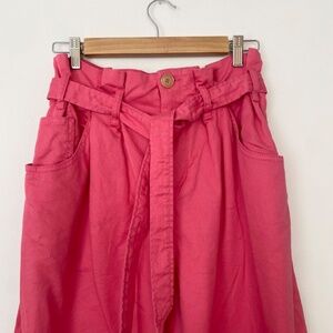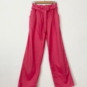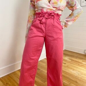 Paperbag waist pink trousers, can be worn cuffed at bottom