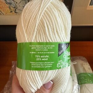 Baycrest Aran weight yarn is a versatile choice for your next crafting project. This listing includes six 100g balls of yarn in a classic white color, perfect for creating cozy sweaters, blankets, or accessories. Made from a blend of wool and acrylic, this yarn offers both warmth and durability, making it ideal for a wide range of knitting or crocheting projects. Upgrade your crafting supplies with this high-quality Aran yarn from Baycrest.