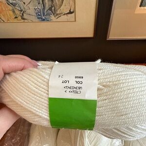 Baycrest Aran weight yarn is a versatile choice for your next crafting project. This listing includes six 100g balls of yarn in a classic white color, perfect for creating cozy sweaters, blankets, or accessories. Made from a blend of wool and acrylic, this yarn offers both warmth and durability, making it ideal for a wide range of knitting or crocheting projects. Upgrade your crafting supplies with this high-quality Aran yarn from Baycrest.
