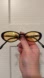 Fossil black oval bayonetta sunglass frames with yellow tinted lenses.