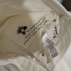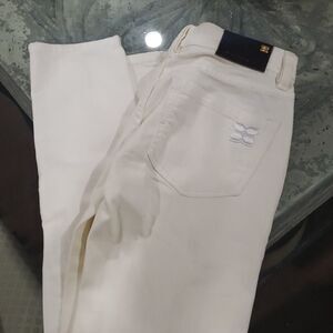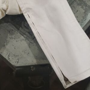 Gorgeous white jeans, distressed zippers at the bottom, nice gold metal hardware, size 26 inseam 33 cuff 6, dropp about 8 in