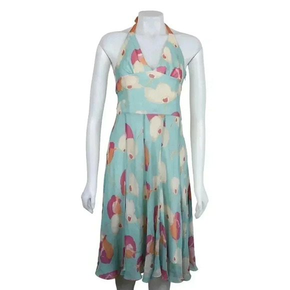 Bcbg Max Azria Silk Floral Halter Dress Turquoise Orange Size 8