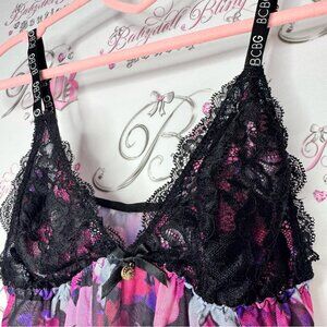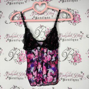 Bcbg tank top crop floral mesh black pink purple white logo straps sexy cute