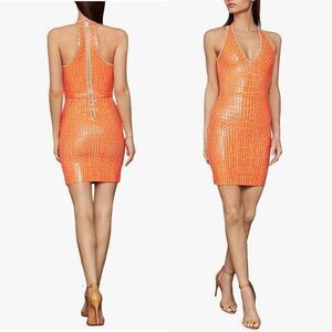 Bcbgmaxazria Sleeveless V-Neck Textured Sweater Bodycon Mini Dress Papaya M