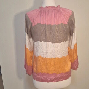 Bcbgmaxazria silk multi colour balloon sleeve top SZ XS