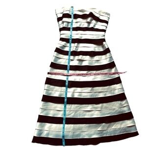 BCBGMaxAzria strapless midi dress corset ivory and black stripe layers size 0