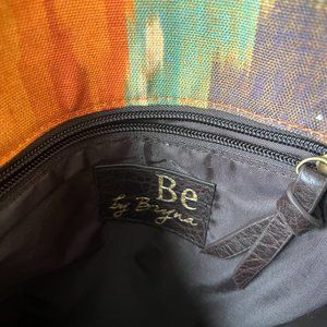 Handmade leather and canvas clutch, magnetic closure, zip closure pocket inside