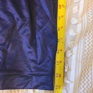 Dark blue, very stretchy. Rouching details in all the right places. Double cross back spaghetti strap.