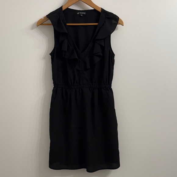 Chic black mini dress by BeBop. Features elegant ruffle details. Perfect for any occasion.