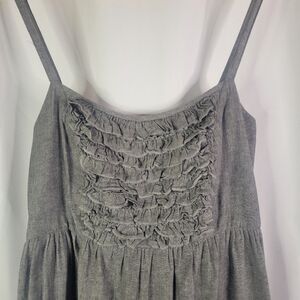 Lovely natural 100% cotton gray sun dress with layers of ruffles on the chest. EUC. Size L