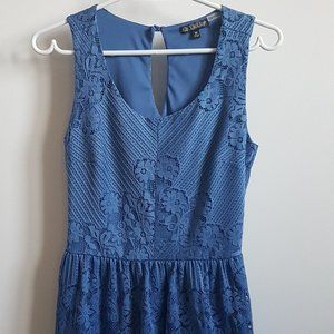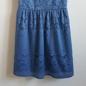 Lace Fit & Flare Blue Dress Light weight and floral fun design. Used, but in great condition, no damage.