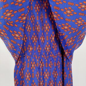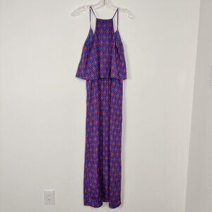 BeBop Women's Maxi Dress Size M Blue Red Tribal Pattern Summer Bohemian Hippie