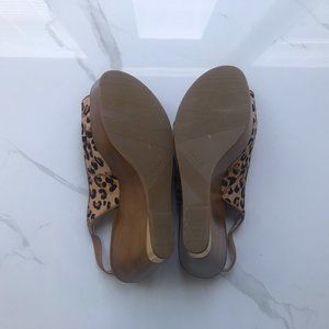 BeLLE Leopard Print Fur Effect Wedge Sandals size 5.5/6