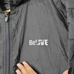 Kids BeLive Full Zip Windbreaker Jacket Coat Pouch Waterproof Black Hooded Unisex Lightweight Pockets Vented Size Large
