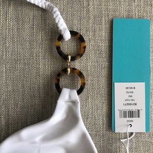 The Nadia triangle bikini top is perfect if you are looking for a bikini with hardware that is simple yet so chic! This top features acrylic rings with gold link hardware and braided ties. The Nadia skimpy bikini bottom is perfect if you are looking for a bikini with hardware that is simple yet so chic! This bikini bottom gives you just the perfect amount of coverage. Skimpy coverage with full shirring.