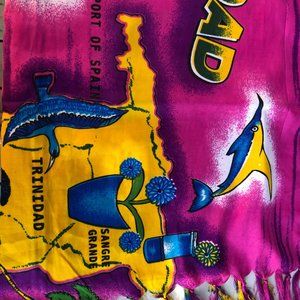 Vibrant & colorful wrap to keep you looking great at the beach! This wrap is pre-owned, but never used, tag is still on. It is approximately 64 inches long (not including the tassels) x 42.5 inches wide.