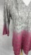 This is a lightweight hoodie top with drawstrings, 3/4 sleeve and tie-dye ombre from grey down to pink. This delicate fabric shows glimpses of whatever you choose to wear underneath it.