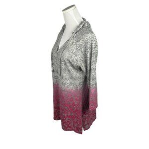 Beach Coverup Womens L Hoodie Ombre Lightweight Pink Gray Pullover Shirt Top