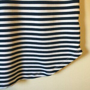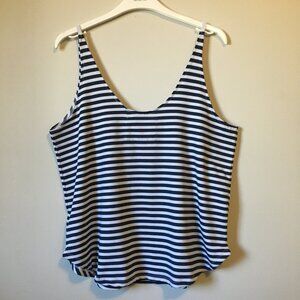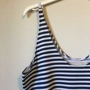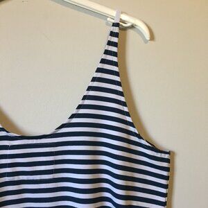 Very good preowned condition, dark navy blue and white striped tank top by Melissa & Marley. Perfect for a beach house retreat. Has that bathing suit like fabric and stretch that let's you just hop into the water without changing.
