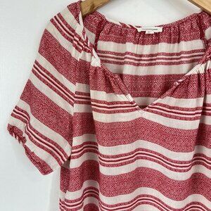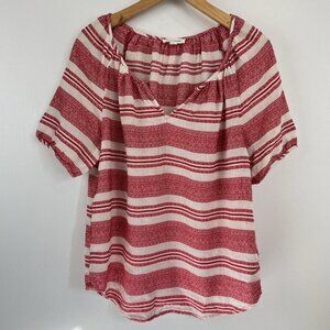 Beach Lunch Lounge Women's Medium Cotton Striped Short Sleeve Top Boho Coastal