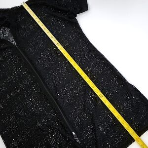 Beach Pool Cover-Up Black Crochet Dress Hoodie Full Zip Up Short Sleeves Sz S/M