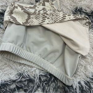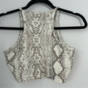 Stylish snake print crop ribbed sports top by Beach Riot. Sold at Revolve. Stylish enough to wear to the gym or as a crop top. Built in shelf bra.