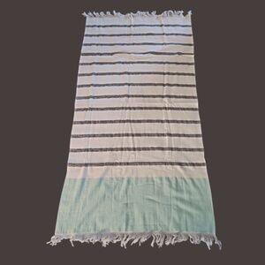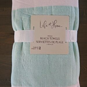 Beach Towels Fringed Set Of 2 Life At Home 60 x 30 Inch Cotton Poly Blue White