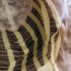 Fabulous combo of a white and a coppery red. Very natural looking sythetc wig, basic capThe white is the dominant colour. Gorgeous beach waves. S to M adjustable cap