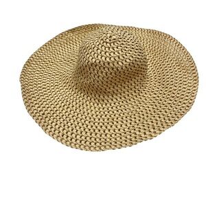 Beach hat. Tan light colour. Paper straw hat. Wide brim. No brand tag or composition tag.