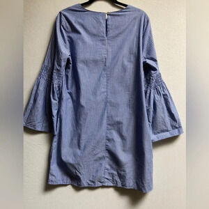 BeachLunchLounge Anthropologie Cotton Blue & White Striped Bell Sleeve Dress Sz M