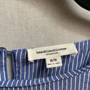 BeachLunchLounge Anthropologie Cotton Blue/White Striped Bell Sleeve Dress Sz M
