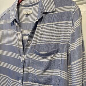 BeachLunchLounge Blue & White Striped Button Down Shirt XS Lightweight Coastal