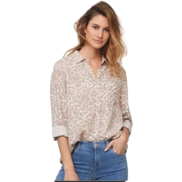 100% viscose Button front shirt with drop back hem 3/4 length sleeve Chest pocket Machine washable •Pit to pit : 19” (flat lay) •Length : 26” (front) / 29” (back) •Condition : excellent pre-owned